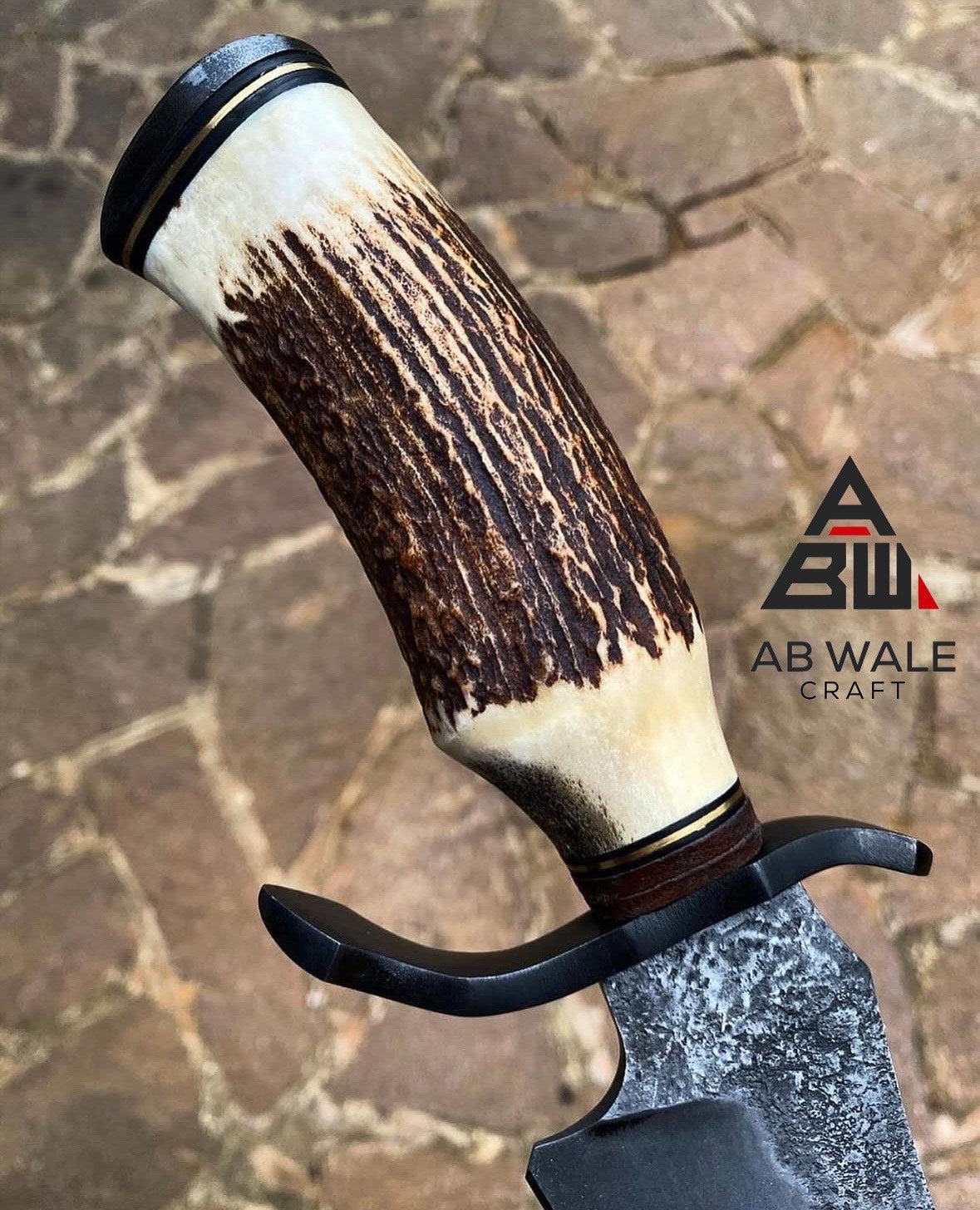 Handmade High Carbon Steel, Hunting Bowie Knife, Stacked Leather Handle, Fixed Blade Knife